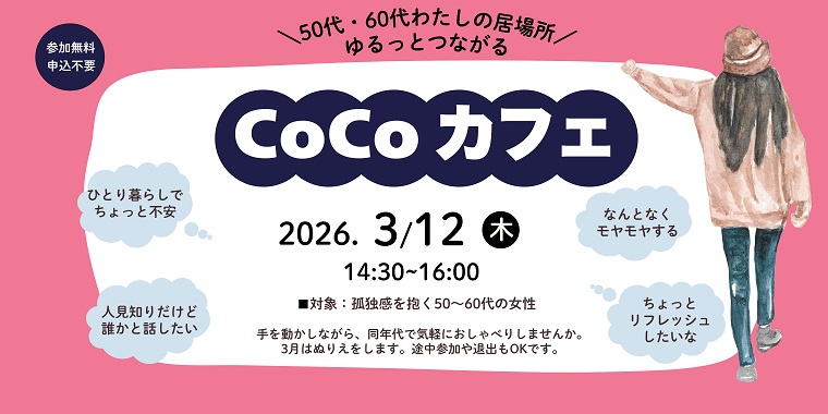 2026年3月12日(木)主催講座 50代・60代わたしの居場所ゆるっとつながるCoCoカフェ