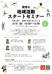 地域で活動中の方も、これから活動したいと思っている方も、男性グループの社会的意義を、一緒に考えてみませんか。
