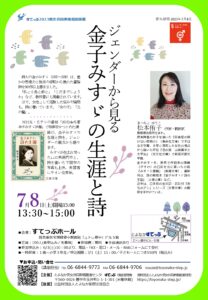 詩人の金子みすゞの詩と生涯を読み解くことで、現代の女性の生きづらさに通底するジェンダー問題を 焦点化し、男女共同参画社会実現の重要性を参加者と共有する。