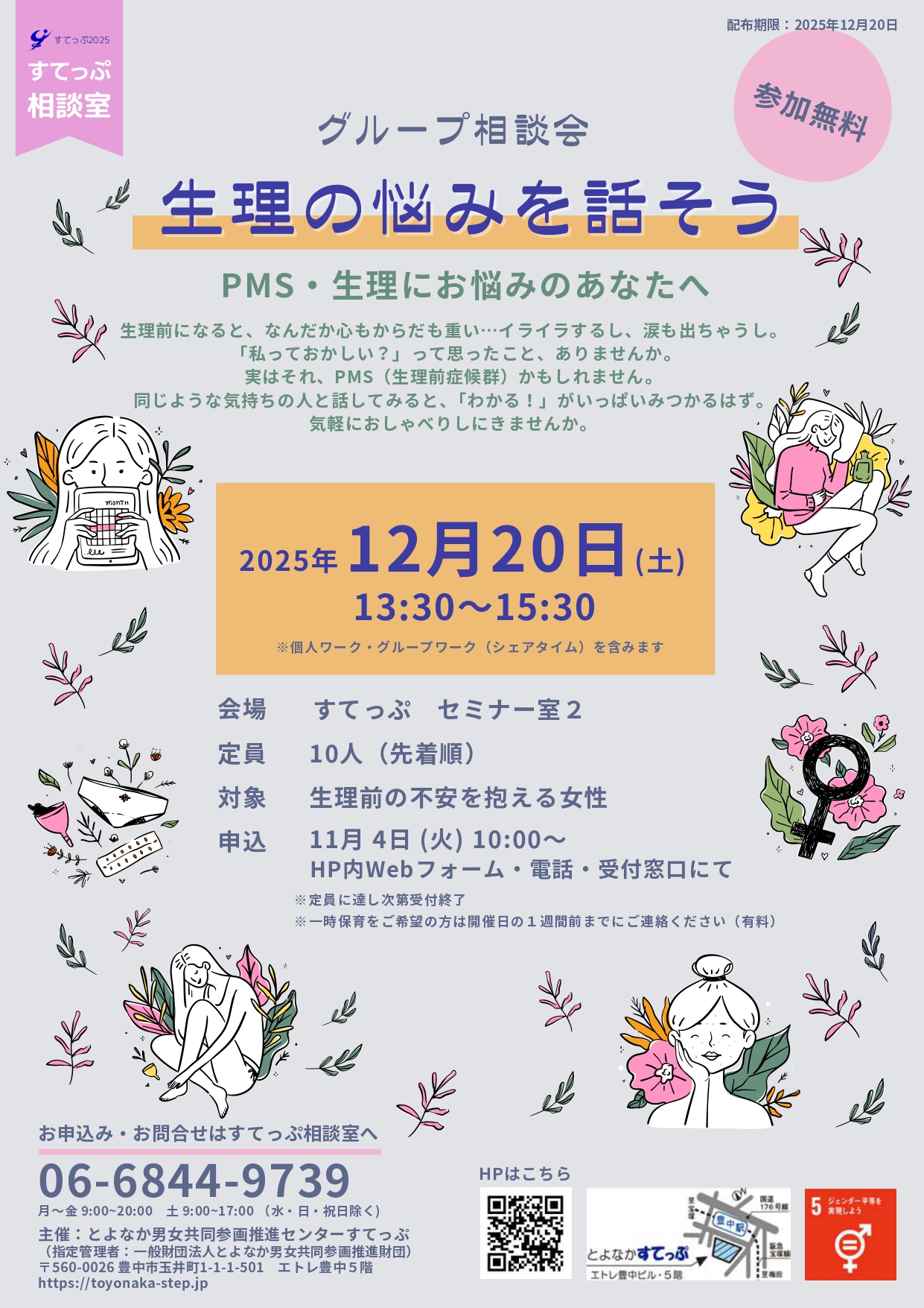生理の悩みを抱える女性同士が気軽に話せるグループ相談会です。