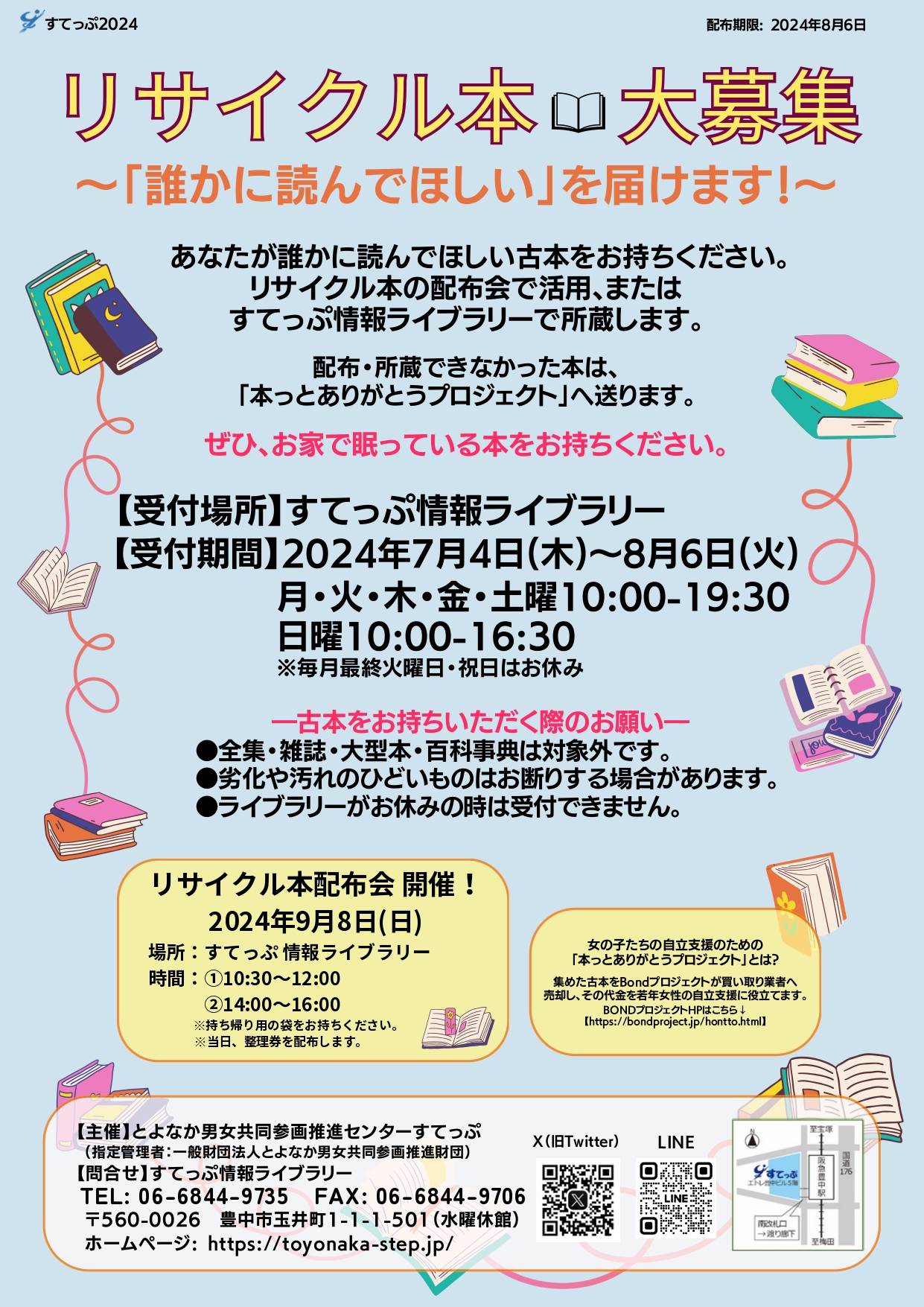 リサイクル本配布会を2024年9月8日(日)に開催します。