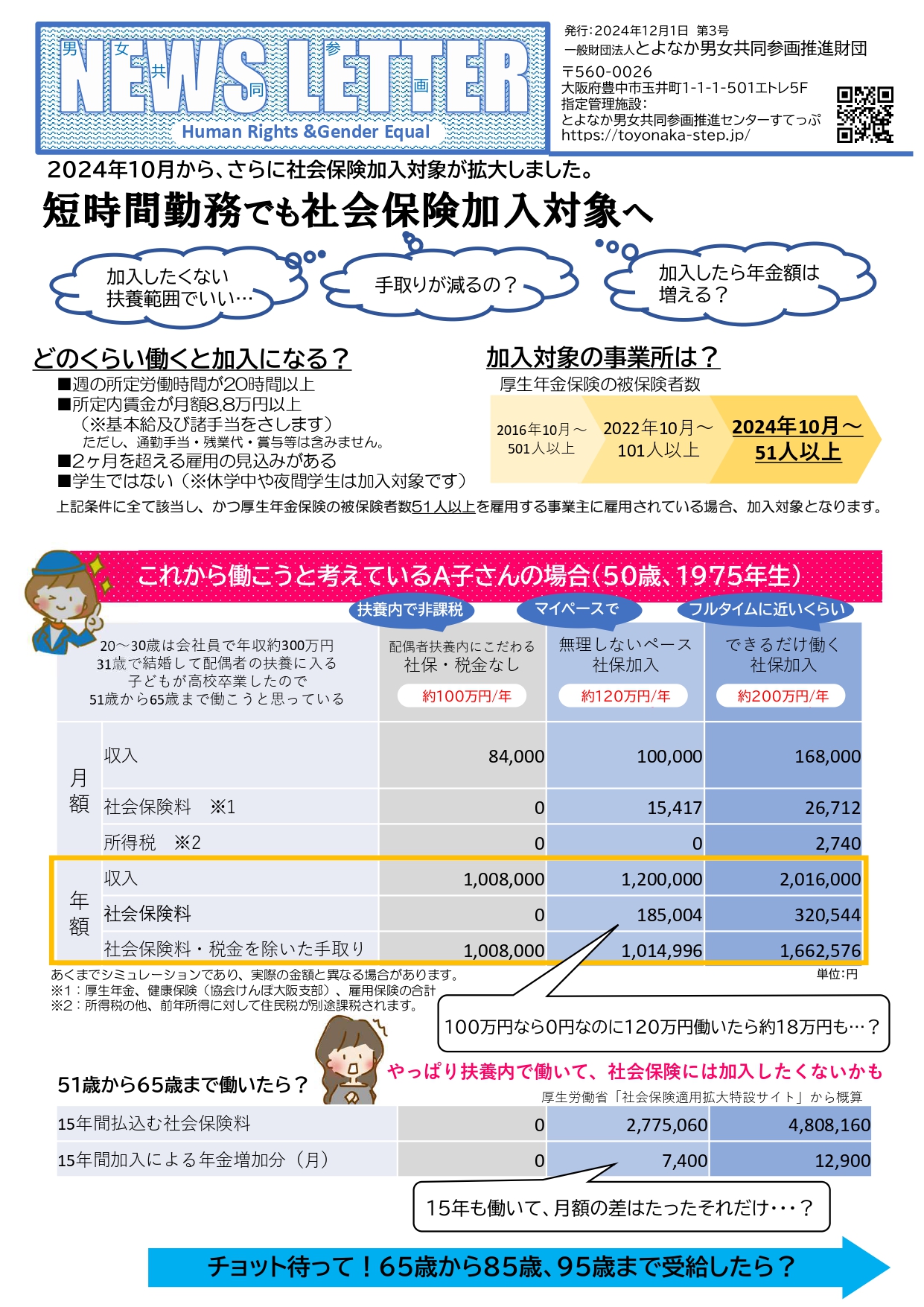 第3号は、社会保険加入対象拡大、女性の働き方と年金額について、まとめています。